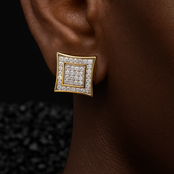 Introducing Different Drip’s Iced Pave Square Stud Earring. This striking piece will shine up the room from all angles with its glistening hand-set stones. You're guaranteed to stand out while rockin' this unique piece. Only found at Different Drips.