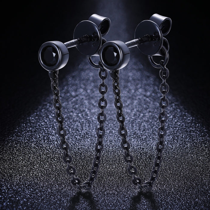 S925 Black Moissanite Stud Drop Chain Earrings