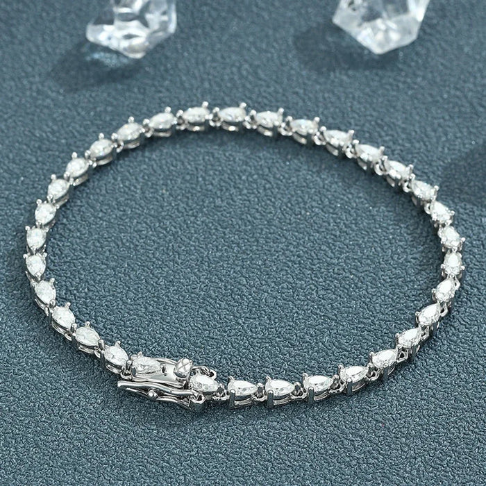 Women's S925 Moissanite Diamond Tear Drop Link Bracelet